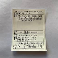 牛乳、カカオ、砂糖、甜菜糖、卵白(太陽卵)、金賞受賞ラム酒、熟成バニラエキス/トレハロース(デンプン由来)、植物性安定剤(増粘多糖類)、(一部に乳成分を含む)